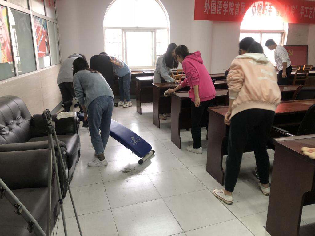 经过三个小时的辛勤工作,“教工之家”的桌椅和物件摆放得整齐有序、焕然一新。